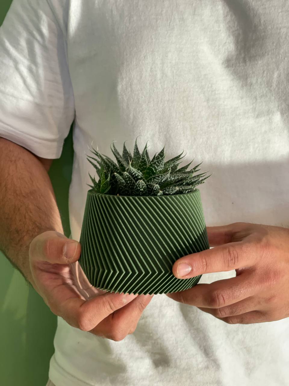 Tutti i prodotti della collezione NATURE sono stampati in 3D e vengono realizzati con materiali eco-sostenibili: una miscela di legno riciclato e bioplastiche a base di mais. Questa composizione rende i vasi al 100% vegetali e sostenibili.